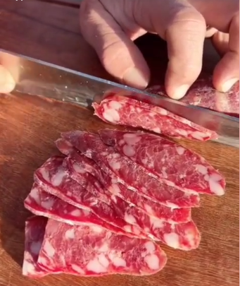 Salame de puro cerdo, artesanal de Colonia Caroya, madurado en sótano, con un tiempo no menor a 21 días, un salame equilibrado, de sabor intenso y aromas suaves, en donde se pueden evidenciar las distintas especias con las que fue realizado.
