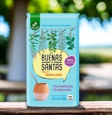 Yerba Mate elaborada con Palo con Hierbas Aromáticas reales. (yerba, menta, burrito, cedrón, incayuyo) Sin aromatizantes. Sin saborzantes. Envase amigable con el medioambiente