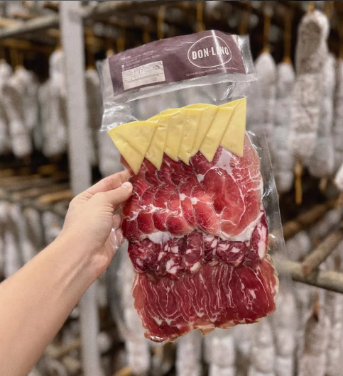 Salame de puro cerdo, artesanal de Colonia Caroya, madurado en sótano, con un tiempo no menor a 21 días, un salame equilibrado, de sabor intenso y aromas suaves, en donde se pueden evidenciar las distintas especias con las que fue realizado.